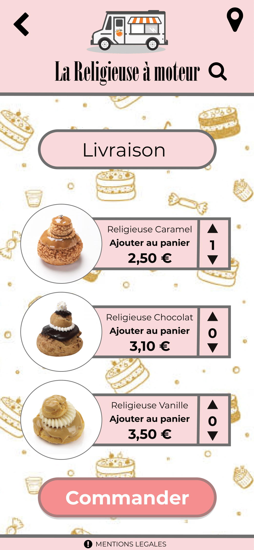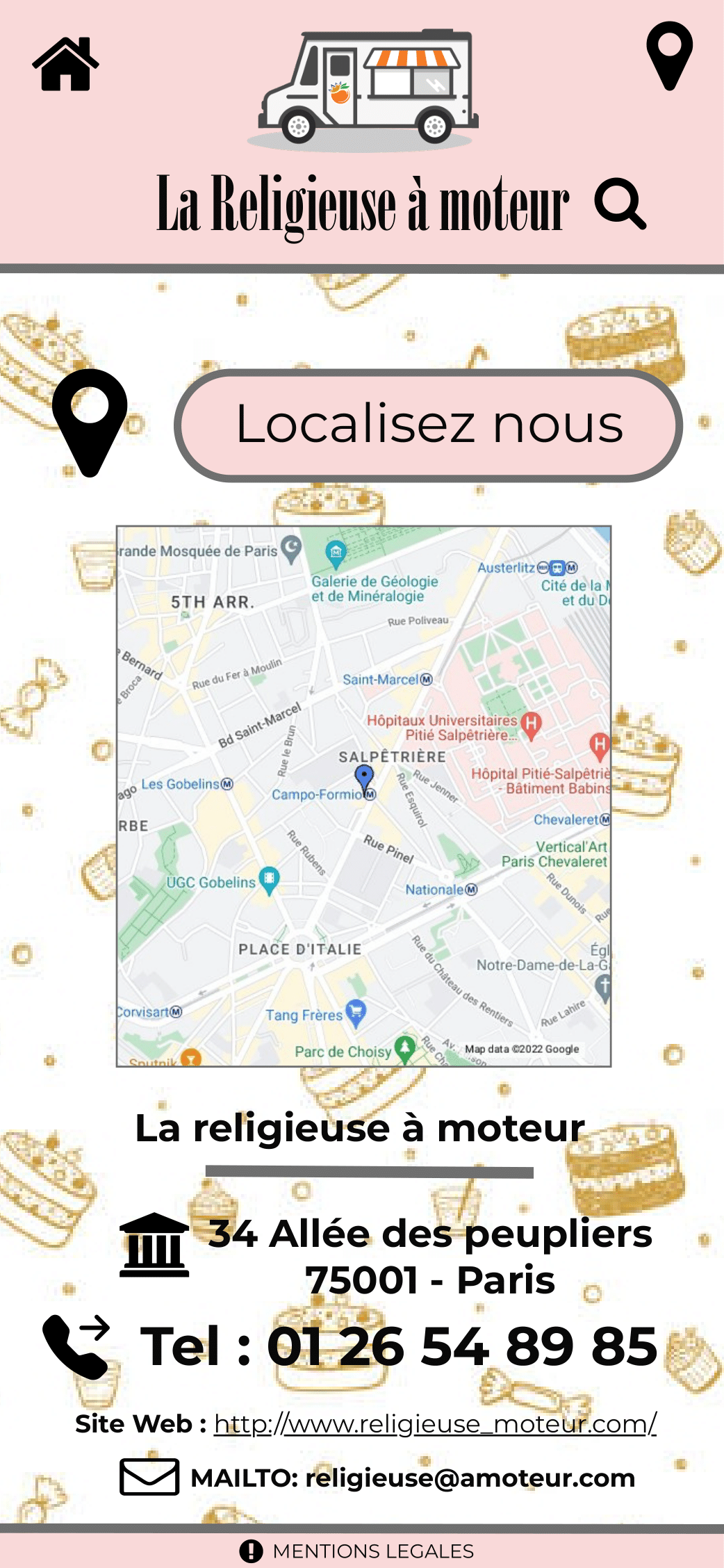 Votre client, le foodtruck spécialisé dans la pâtisserie nommé La Religieuse à moteur, souhaite toujours que vous lui conceviez une interface efficace et répondant aux critères de l’UI/UX pour son site internet en version mobile.