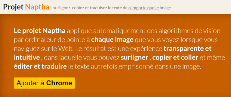 Mais l’extension ne s’arrête pas là. Project Naptha permet aussi de modifier le texte ou de le traduire. Bref, on vous laisse essayer tout ça. Bluffant on vous dit !