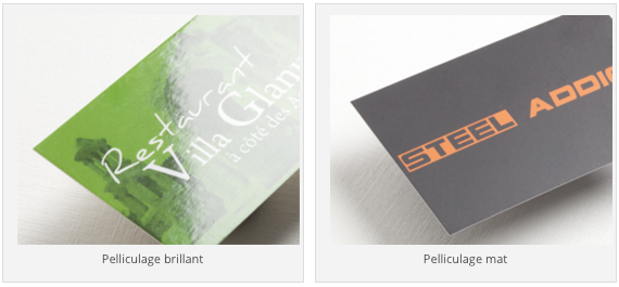 Attention ! Ne pas confondre le pelliculage mat ou brillant avec la qualité du papier, mat ou brillante, que l’on peut choisir sur certains produits.