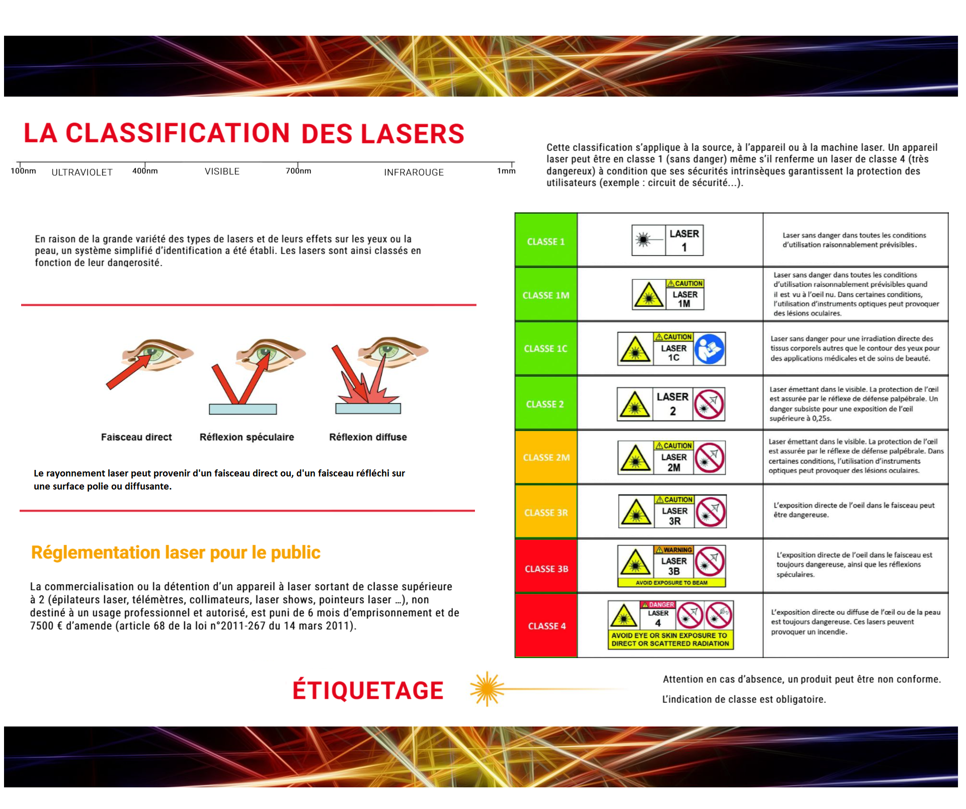 Classe 2 : Appareils émettant un rayonnement visible de 400 à 700 nm !