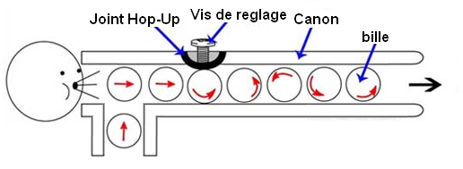 A savoir : Une bille tirée avec le système hop up ira 2x plus loin qu’une bille tirée avec une réplique d’une puissance similaire non équipée de ce système !