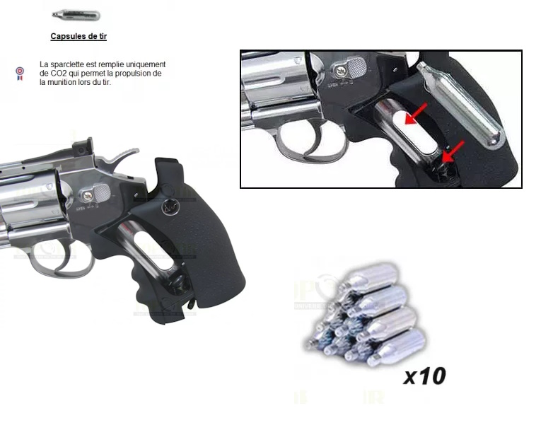 Quand vous exposez votre réplique, ne pas laisser de cartouche CO2 percutée à l’intérieur. La pression et la basse température de son gaz à l’état liquide va avoir un effet corrosif sur les joints de la répliques sur une longue période de stockage.